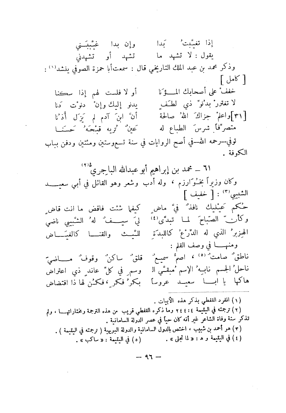 وذكر محمد بن عبد الملك التاريخي قال: سمعت أبا حمزة الصوفي ينشد: كامل
