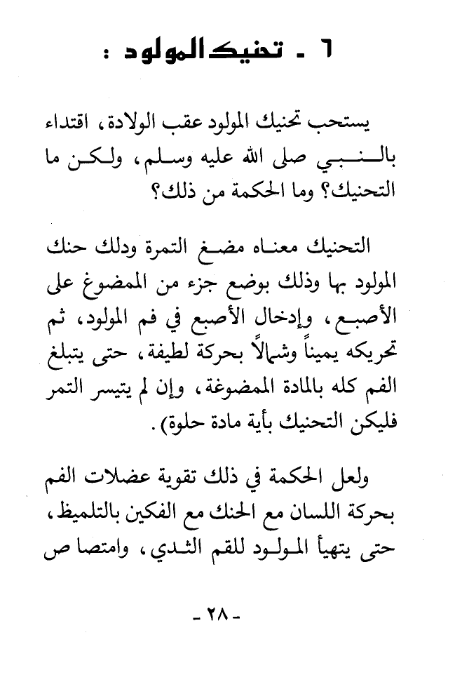 يستحب تحنيك المولود عقب الولادة، اقتداء بالنبي صلى الله عليه وسلم، ولكن ما التحنيك؟ وما الحكمة من ذلك؟
