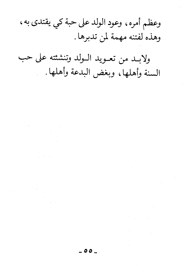 ولابد من تعويد الولد وتنشئته على حب السنة وأهلها، وبغض البدعة وأهلها.
