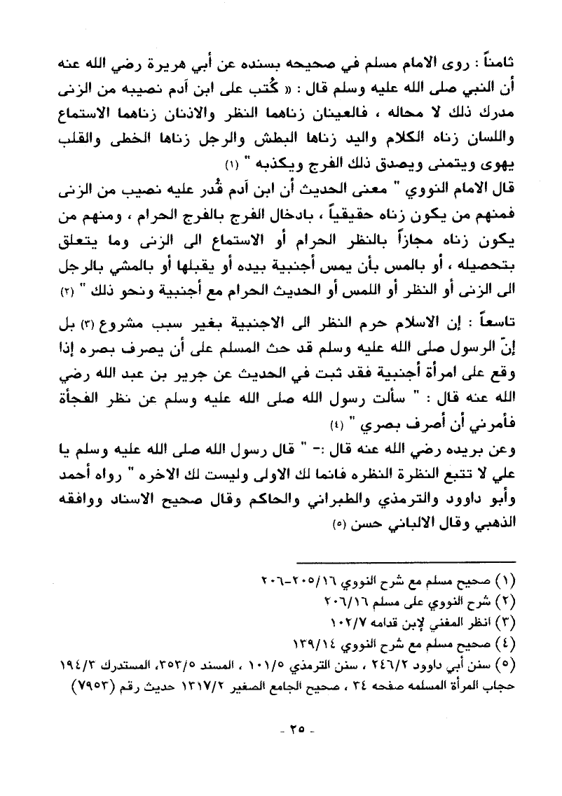 (¬5) سنن أبي داود 2/ 246، سنن الترمذي 5/ 101، المسند 5/ 353، المستدرك 3/ 194، حجاب المرأة المسلمة ص 23، صحيح الجامع الصغير 2/ 1317 حديث رقم 7953.