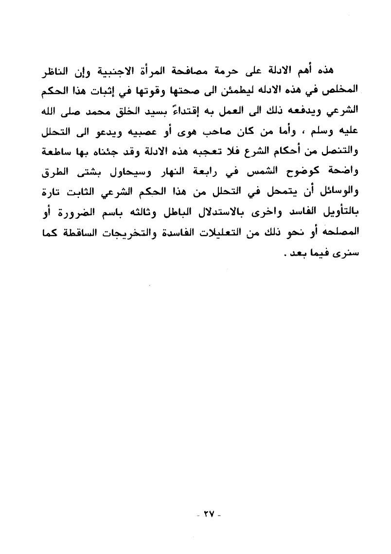 كتاب الأدلة الشرعية على تحريم مصافحة المرأة الأجنبية
