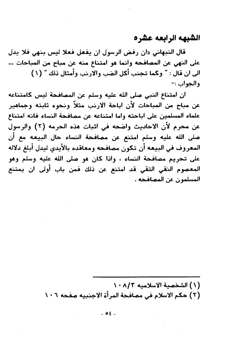 (¬2) حكم الإسلام في مصافحة المرأة الأجنبية ص 106.
