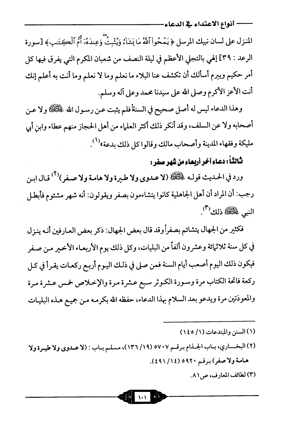 ثالثا: دعاء آخر أربعاء من شهر صفر: