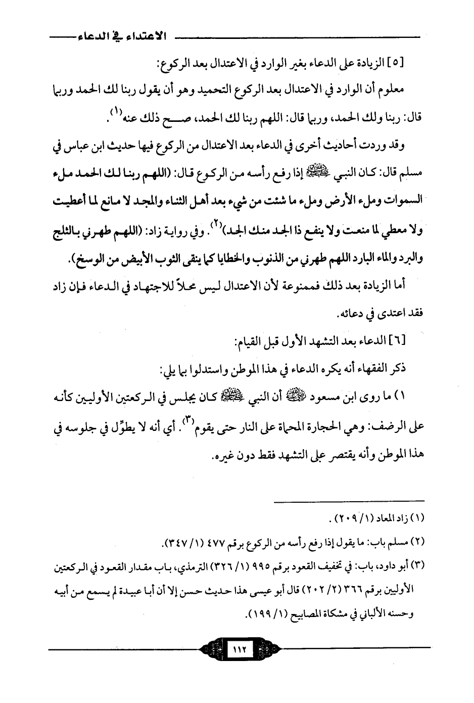 أما الزيادة بعد ذلك فممنوعة لأن الاعتدال ليس محلا للاجتهاد في الدعاء فإن زاد فقد اعتدى في دعائه.