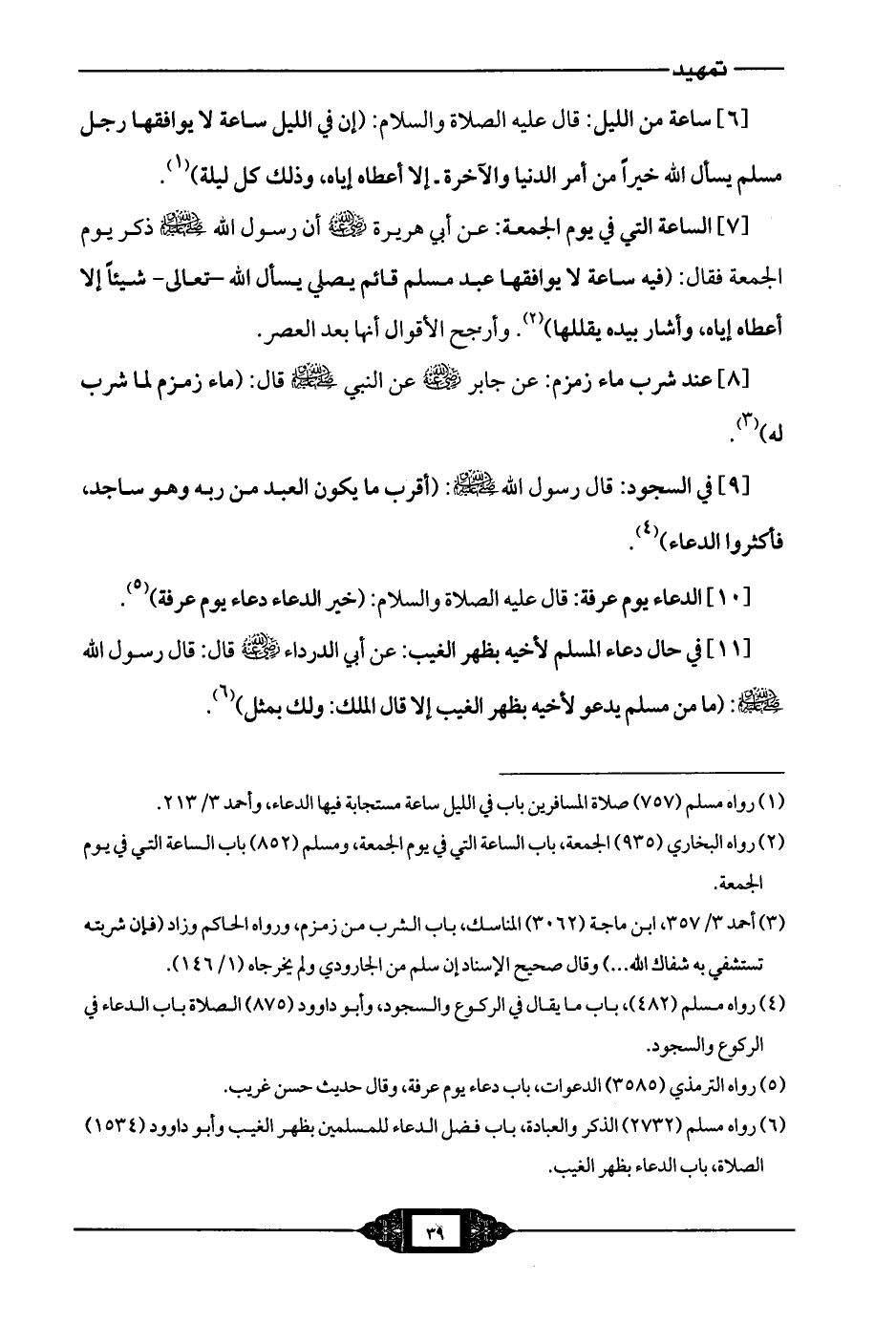 (¬6) رواه مسلم 2732 الذكر والعبادة، باب فضل الدعاء للمسلمين بظهر الغيب، وأبو داود 1534 الصلاة باب الدعاء بظهر الغيب.