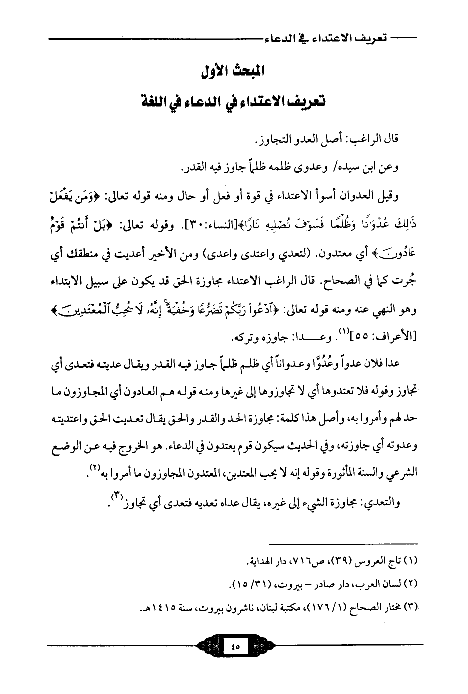 تعريف الاعتداء في الدُّعاء في اللُّغة