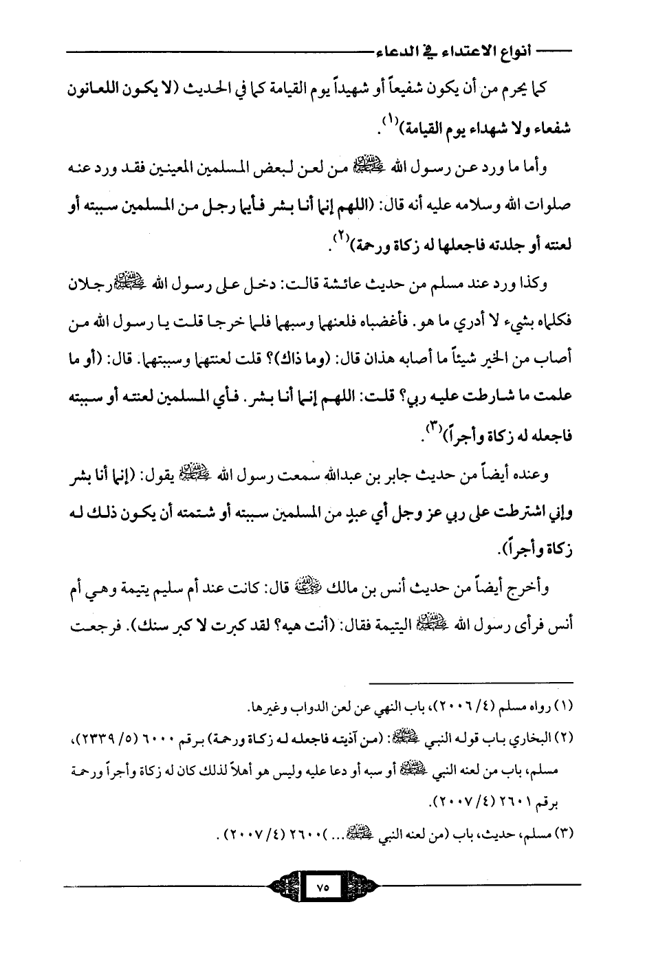 (¬2) البخاري باب قول النبي - صلى الله عليه وسلم -: «من آذيته فاجعله له زكاة ورحمة» برقم 6000 (5/ 2339)، مسلم باب من لعنه النبي - صلى الله عليه وسلم - أو سَبَّه أو دعا عليه وليس هو أهلاً لذلك كان له زكاة وأجراً ورحمة برقم 2601 (4/ 2007).