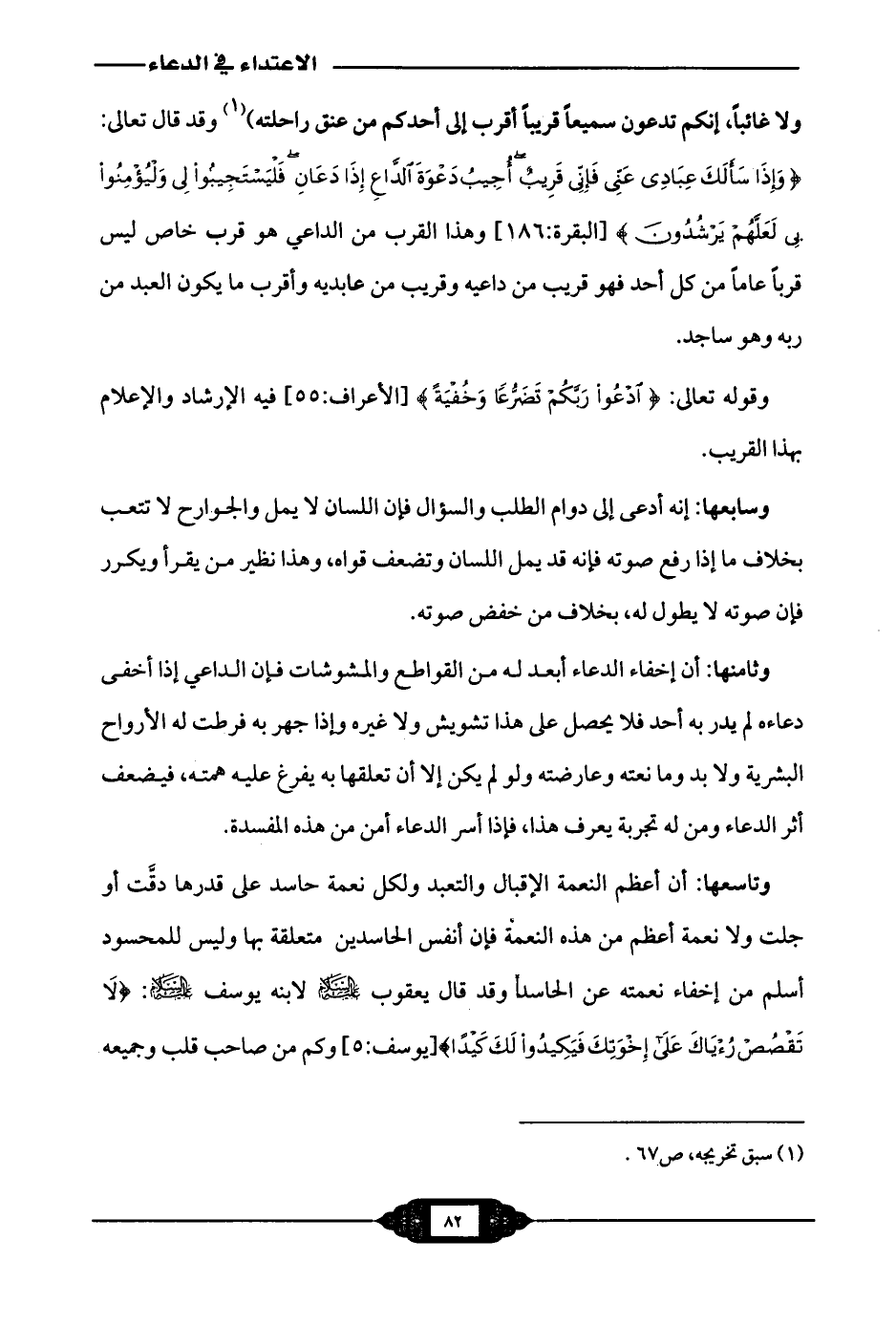 كتاب الاعتداء في الدعاء صور وضوابط ونماذج من الدعاء الصحيح