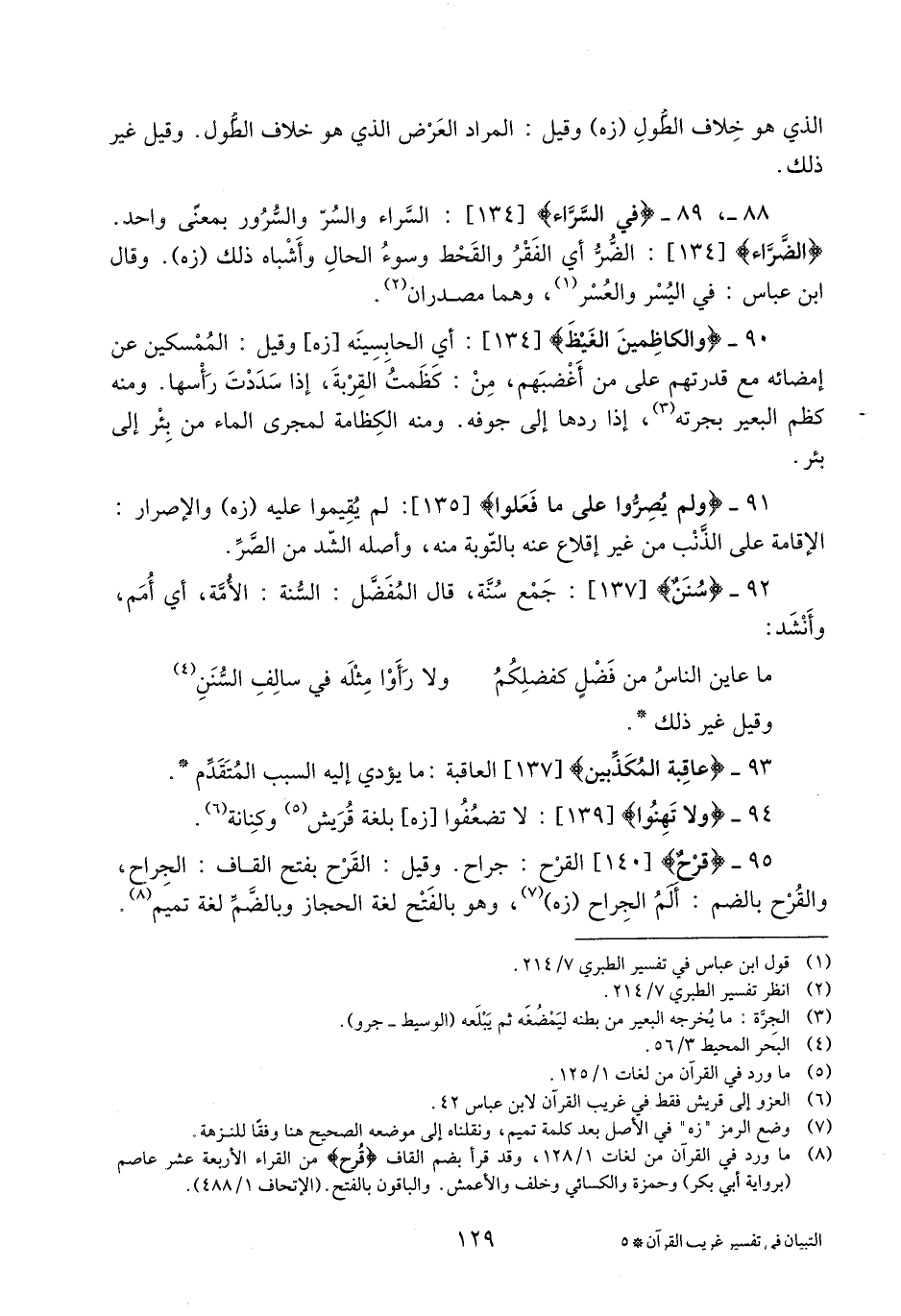 91- وَلَمْ يُصِرُّوا عَلى ما فَعَلُوا [135] : لم يقيموا عليه (زه) والإصرار: