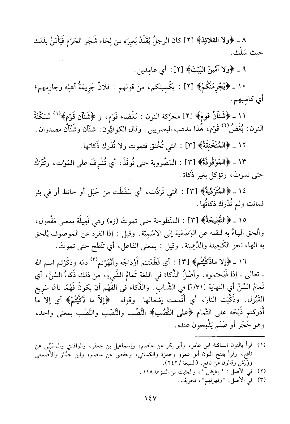 8- وَلَا الْقَلائِدَ [2] كان الرجل يقلّد بعيره من لحاء شجر الحرم فيأمن بذلك حيث سلك.