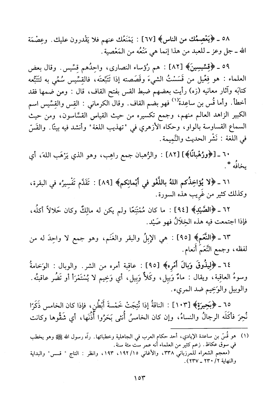 61- لا يُؤاخِذُكُمُ اللَّهُ بِاللَّغْوِ فِي أَيْمانِكُمْ [89] : تقدّم تفسيره في البقرة، وكذلك كثير من غريب هذه السورة.