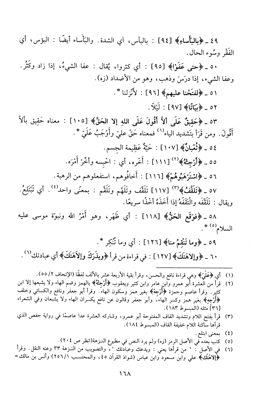 (3) قرأ بفتح اللام وتشديد القاف المفتوحة أبو عمرو، وشاركه العشرة عدا عاصما في رواية حفص الذي قرأها ساكنة اللام خفيفة القاف (المبسوط 184) .