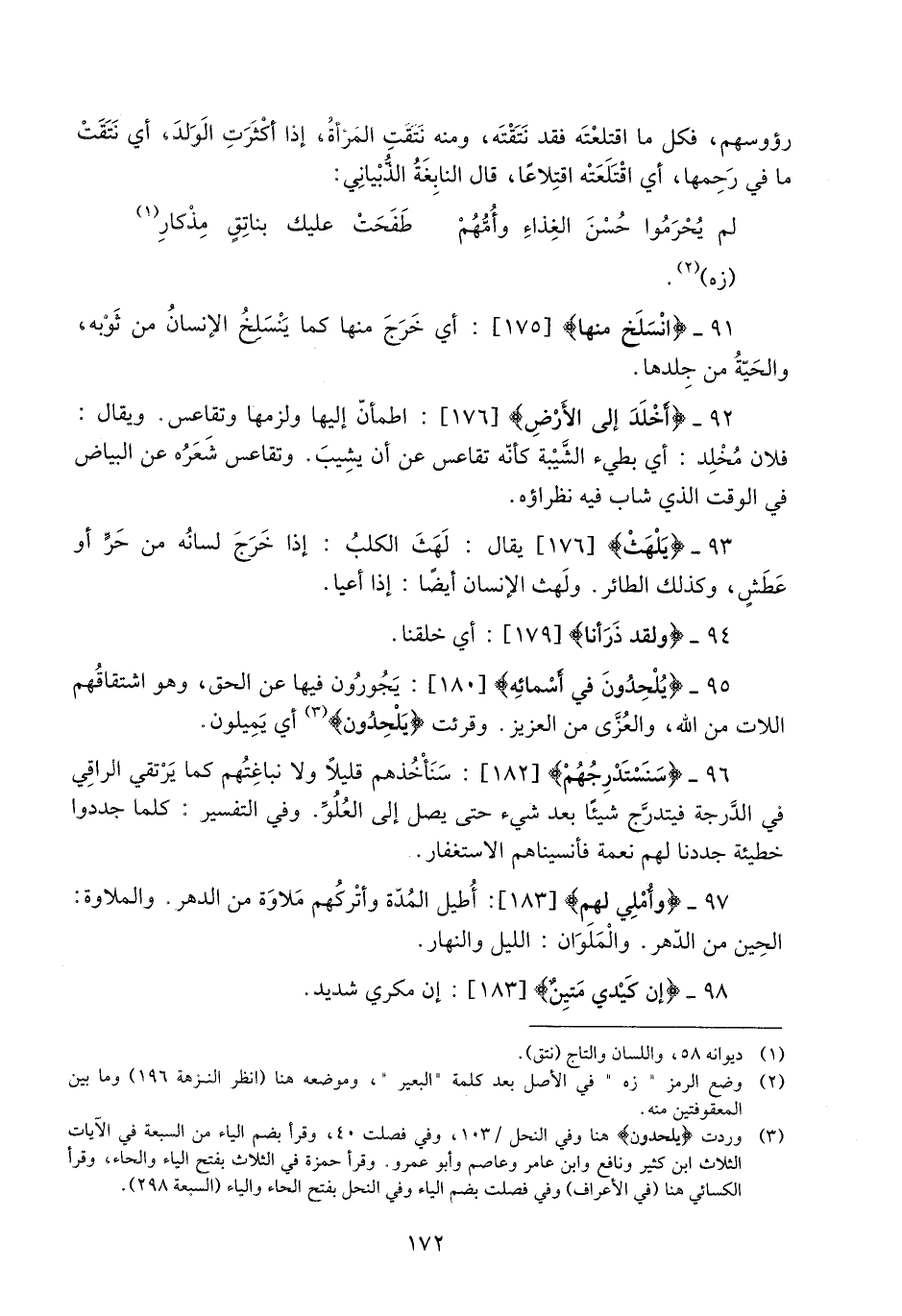 91- فَانْسَلَخَ مِنْها [175] : أي خرج منها كما ينسلخ الإنسان من ثوبه، والحيّة من جلدها.