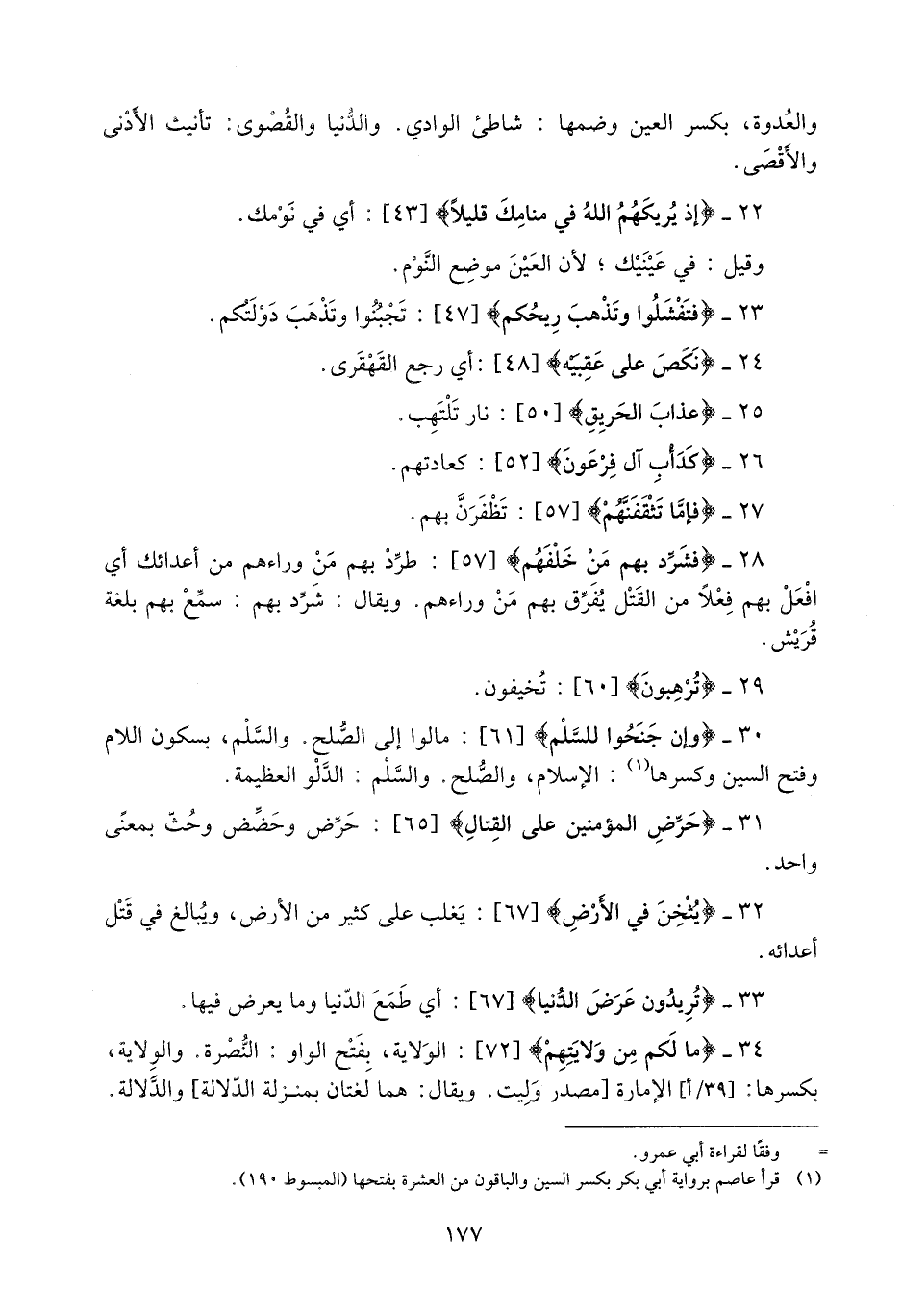 33- تُرِيدُونَ عَرَضَ الدُّنْيا [67] : أي طمع الدّنيا وما يعرض فيها.