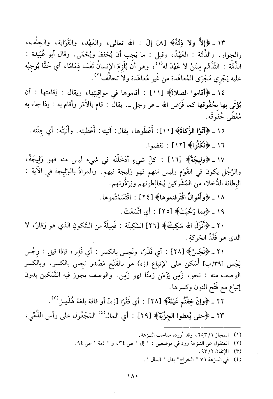 (2) المنقول عن النزهة ورد في موضعين: «إل» ص 34، و «ذمة» ص 94. [.....]