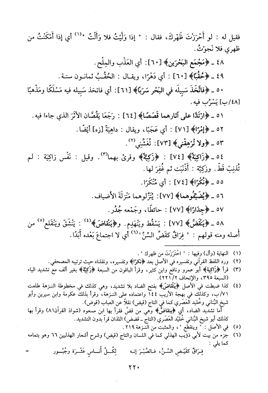 (2) ورد اللفظ القرآني وتفسيره في الأصل بعد نُكْراً وتفسيره، ونقلناه حيث ترتيبه المصحفي.