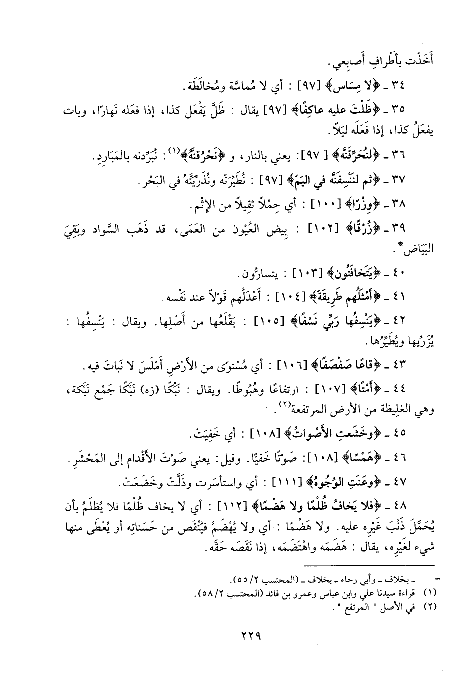 43- قاعاً صَفْصَفاً [106] : أي مستوى من الأرض أملس لا نبات فيه.