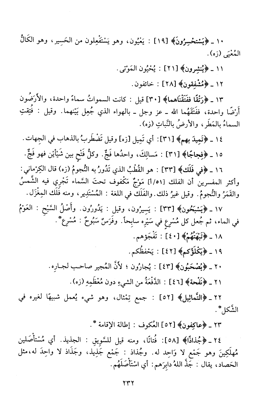 16- فِي فَلَكٍ [33] : هو القطب الذي تدور به النّجوم (زه) قال الكرماني: