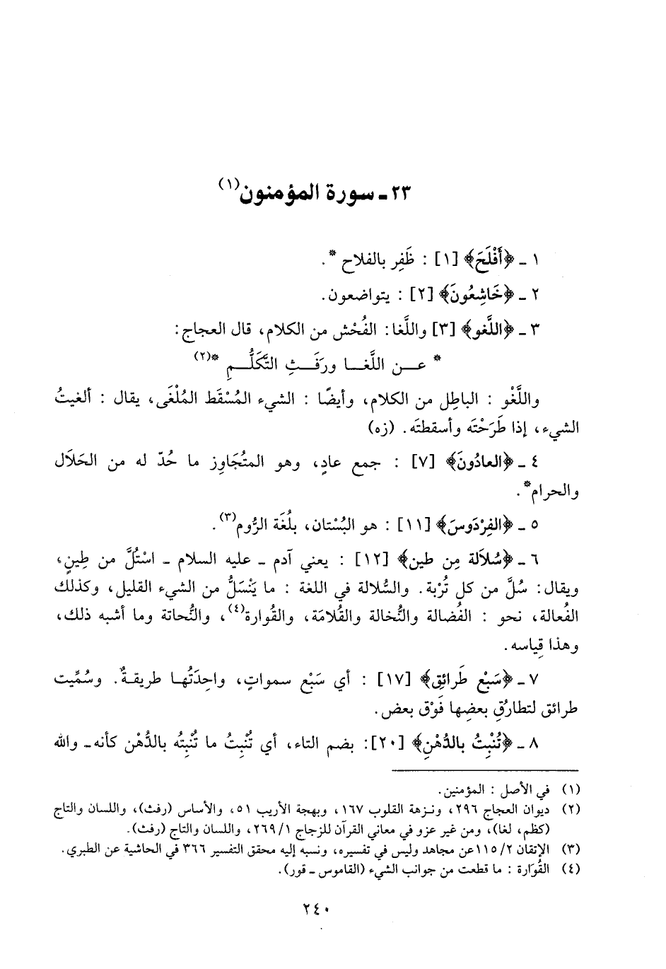 واللّغو: الباطل من الكلام، وأيضا: الشيء المسقط الملغى، يقال: ألغيت الشيء، إذا طرحته وأسقطته. (زه) 4- العادُونَ [7] : جمع عاد، وهو المتجاوز ما حدّ له من الحلال والحرام.