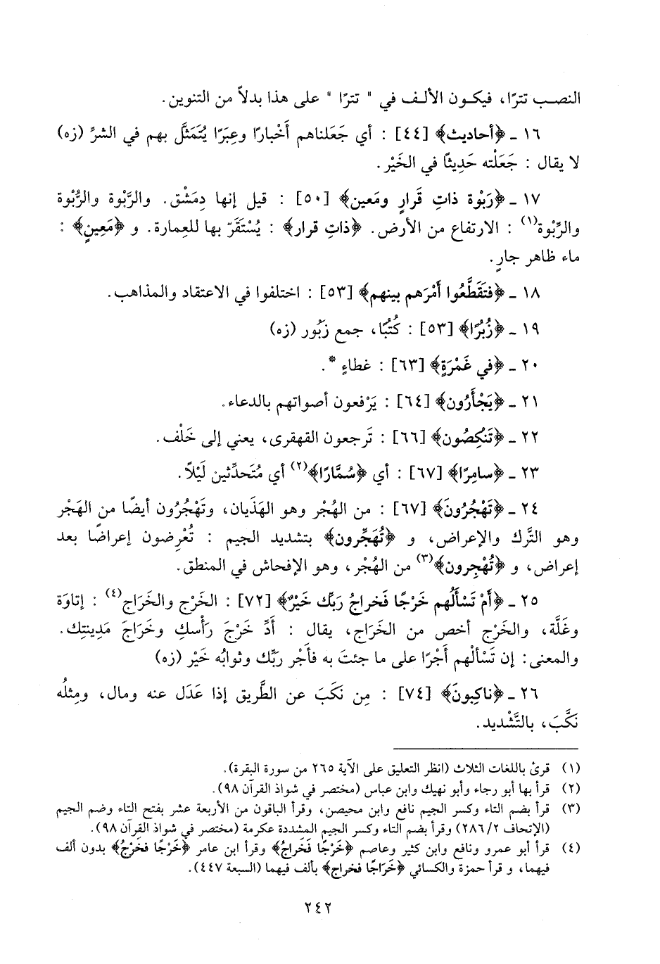 19- زُبُراً [53] : كتبا، جمع زبور (زه) 20- فِي غَمْرَةٍ [63] : غطاء.