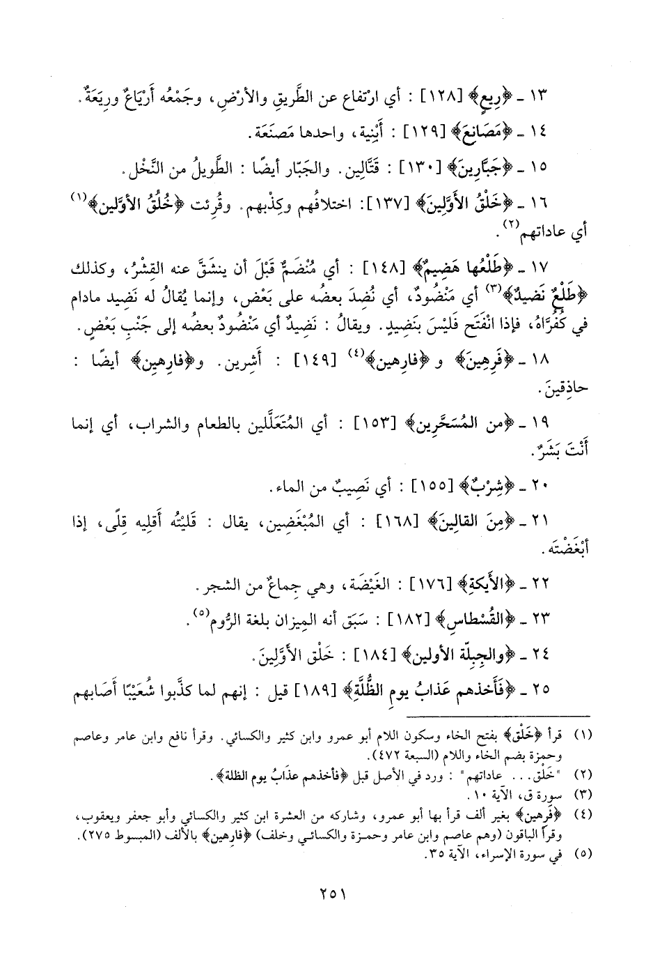 16- خُلُقُ الْأَوَّلِينَ [137] : اختلافهم وكذبهم. وقرئت خلق الأولين «1» أي عاداتهم «2» .