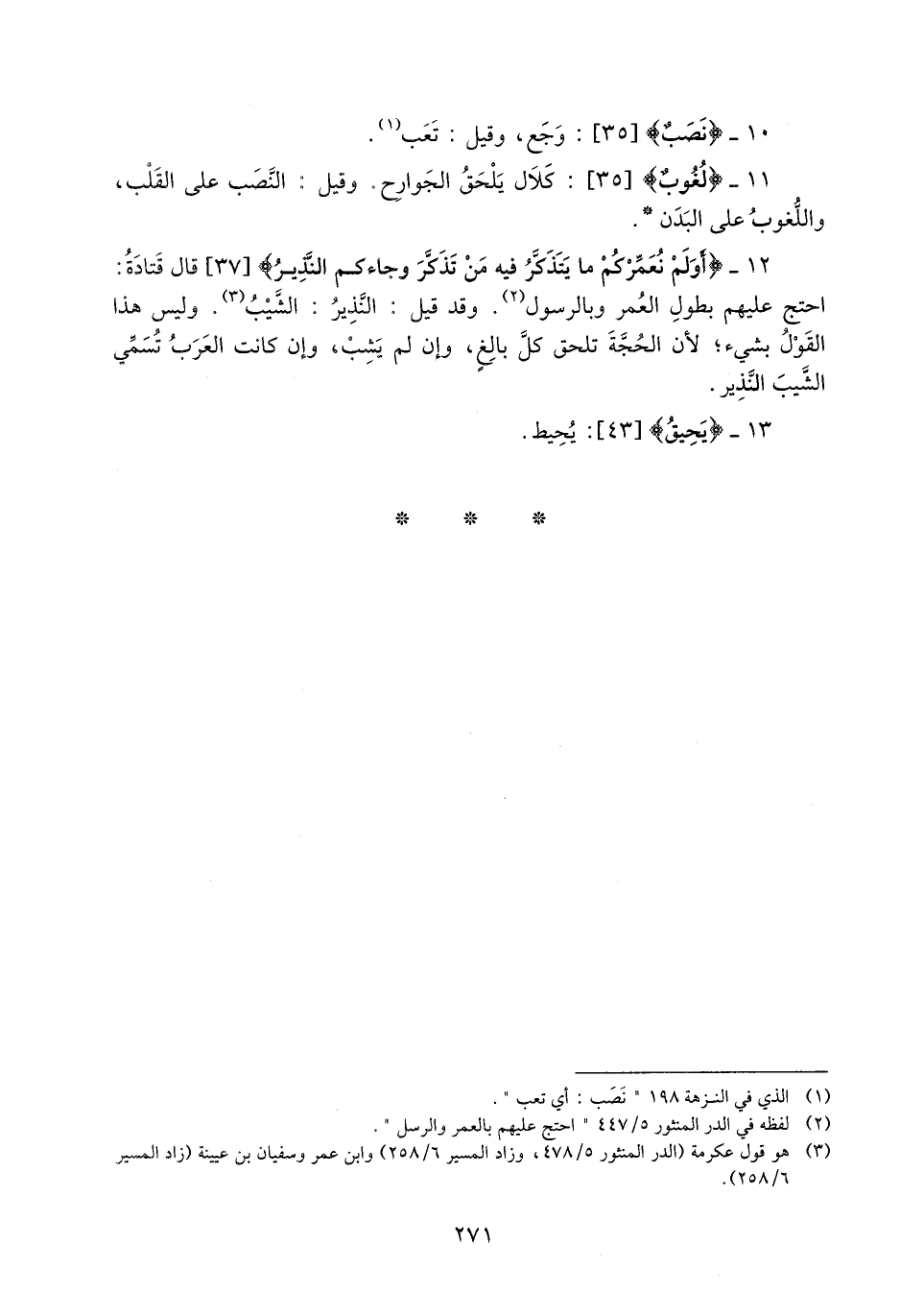 (3) هو قول عكرمة (الدر المنثور 5/ 478، وزاد المسير 6/ 258) وابن عمر وسفيان بن عيينة (زاد المسير 6/ 258) .