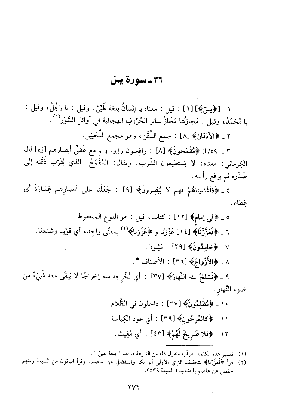 1-[يس] [1] : قيل: معناه يا إنسان بلغة طيّئ. وقيل: يا رجل، وقيل: