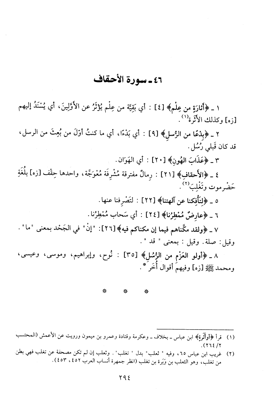 1- أَثارَةٍ مِنْ عِلْمٍ [4] : أي بقيّة من علم يؤثر عن الأوّلين، أي يسند إليهم [زه] وكذلك الأثرة «1» .