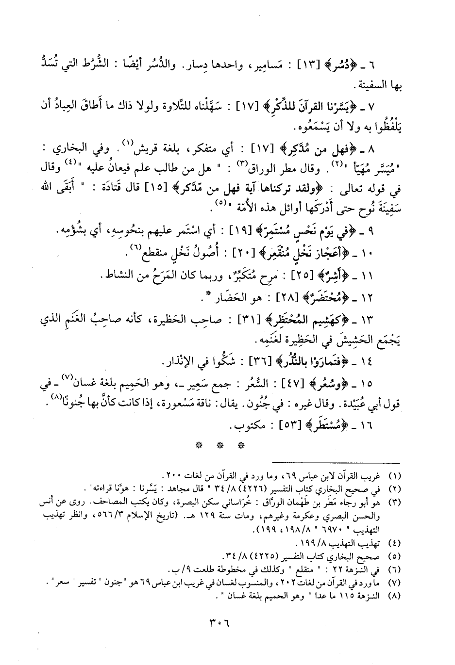 (7) ما ورد في القرآن من لغات 202، والمنسوب لغسان في غريب ابن عباس 69 هو «جنون» تفسير «سعر» .