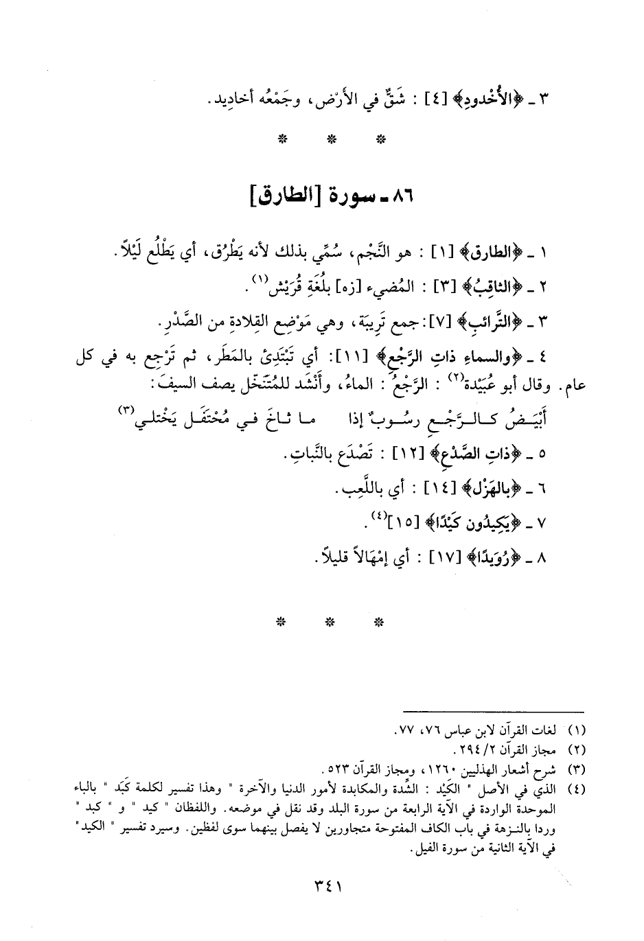 1- الطَّارِقِ [1] : هو النّجم، سمّي بذلك لأنه يطرق، أي يطلع ليلا.