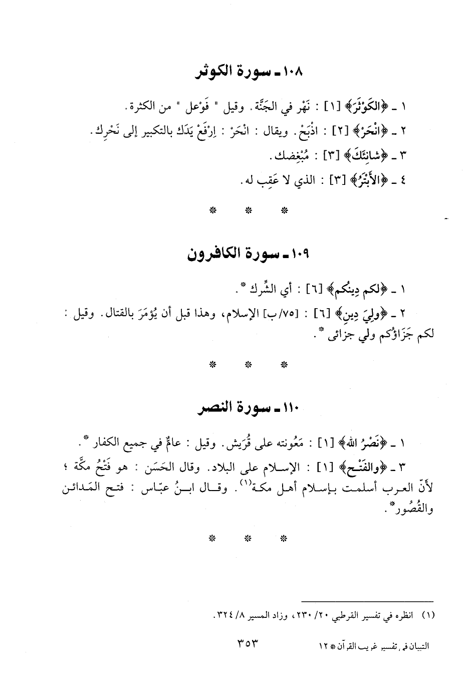 1- الْكَوْثَرَ [1] : نهر في الجنّة. وقيل «فوعل» من الكثرة.