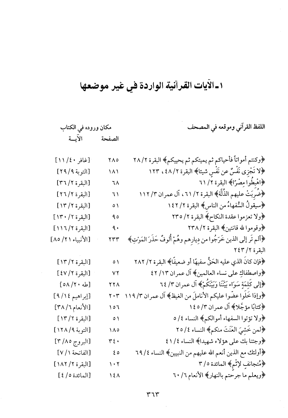 1- الآيات القرآنية الواردة في غير موضعها