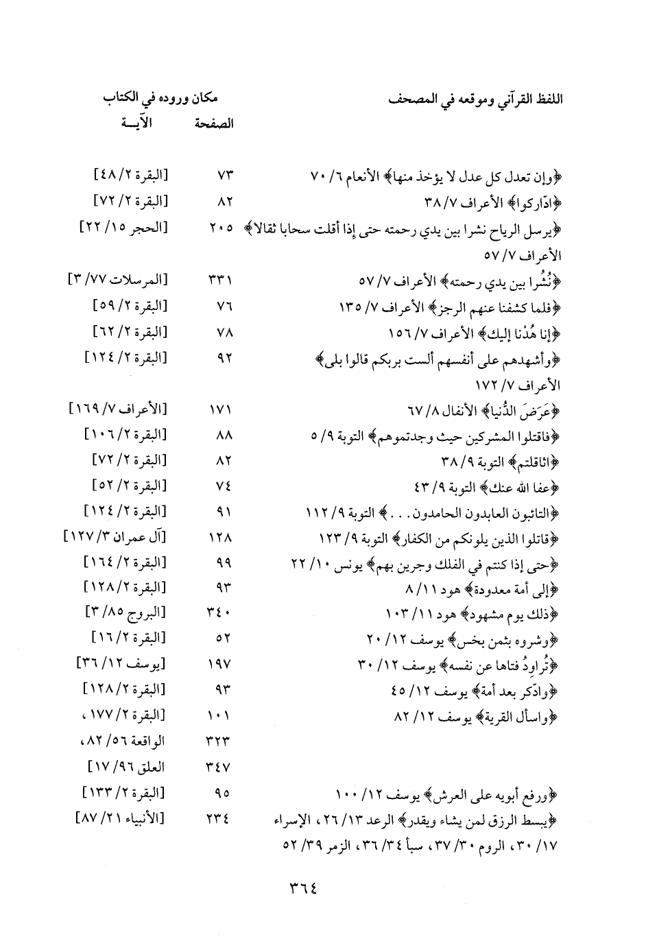 وَسْئَلِ الْقَرْيَةَ يوسف 12/ 82: 101: [البقرة 2/ 177،: 323: الواقعة 56/ 82،: 347: العلق 96/ 17]