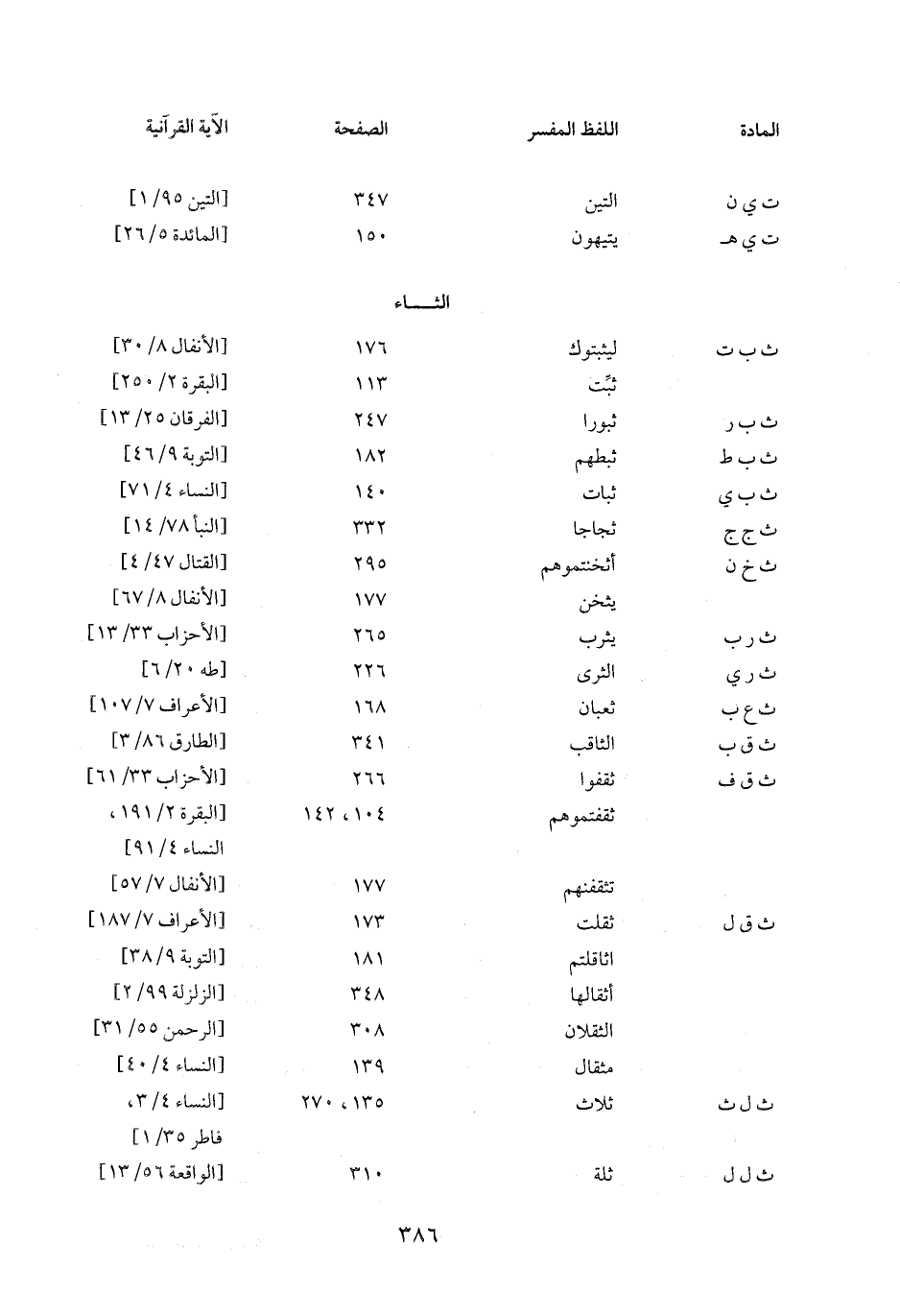 ث ل ث: ثلاث: 135، 270: [النساء 4/ 3، فاطر 35/ 1]