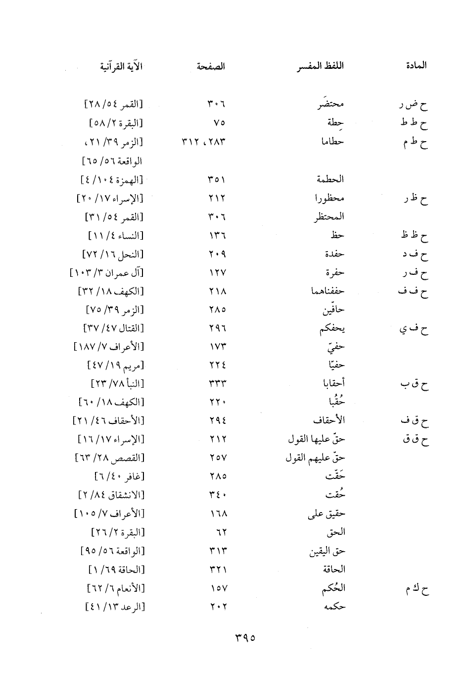 ح ط م: حطاما: 283، 312: [الزمر 39/ 21،::: الواقعة 56/ 65]