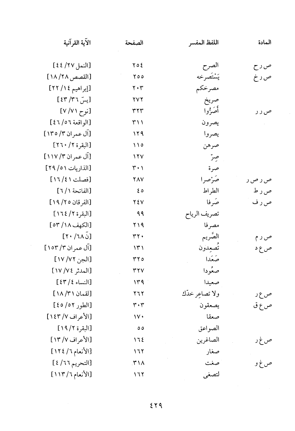 ص ع ر: ولا تصاعر خدّك: 262: [لقمان 31/ 18]
