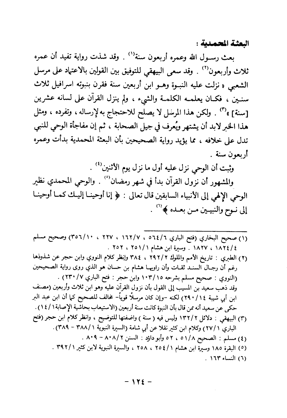 (¬3) البيهقي: دلائل 2/ 132 وليس فيه (سنة) وأضفتها للتوضيح، وانظر كلام ابن حجر (فتح الباري 1/ 27) وكلام ابن كثير نقلا عن أبي شامة (السيرة النبوية 1/ 388 - 389).
