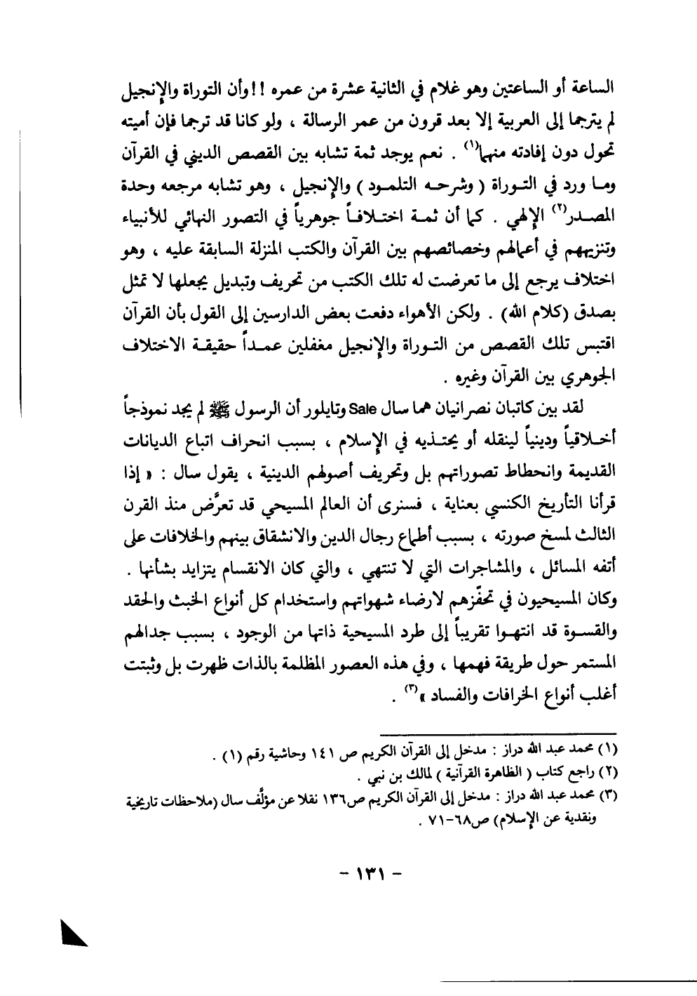 (¬3) محمد عبد الله دراز: مدخل إلى القرآن الكريم ص 136 نقلا عن مؤلف سال (ملاحظات تاريخية ونقدية عن الإسلام) ص68 - 71.