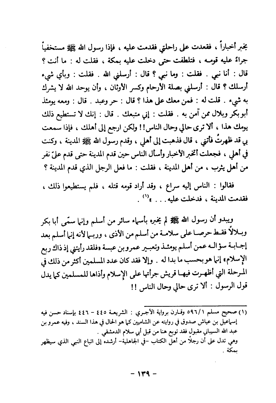 (¬1) صحيح مسلم 1/ 596 وقارن برواية الآجري: الشريعة 445 - 446 بإسناد حسن فيه إسماعيل بن عياش صدوق في روايته عن الشاميين كما هو الحال في هذا السند، وفيه عمرو بن عبد الله السيباني مقبول فقد توبع هنا من قبل أبي سلام الدمشقي.