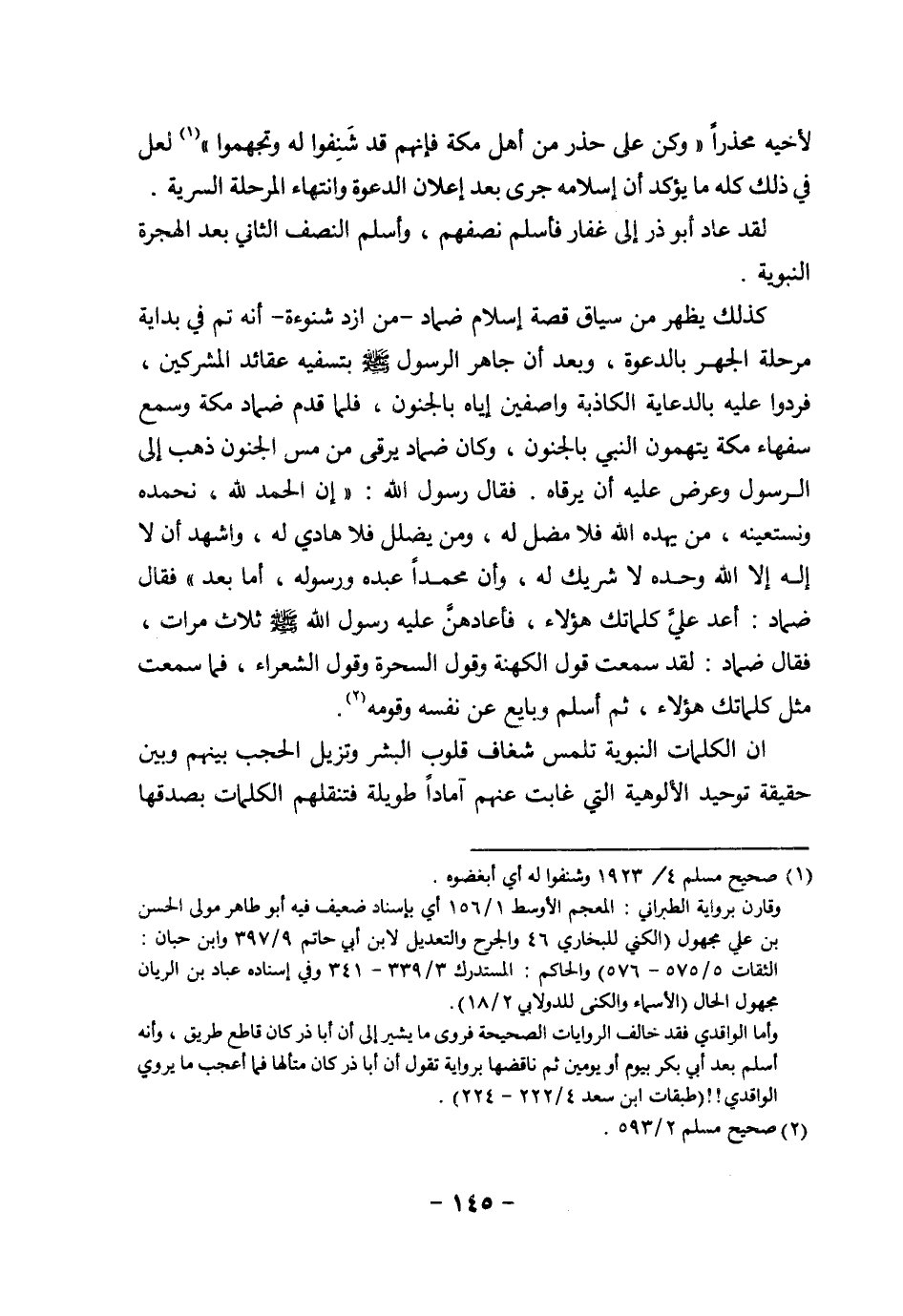لأخيه محذراً "وكن على حذر من أهل مكة فإنهم قد شنفوا له وتجهموا" (¬1) لعل في ذلك كله ما يؤكد أن إسلامه جرى بعد إعلان الدعوة وانتهاء المرحلة السرية.