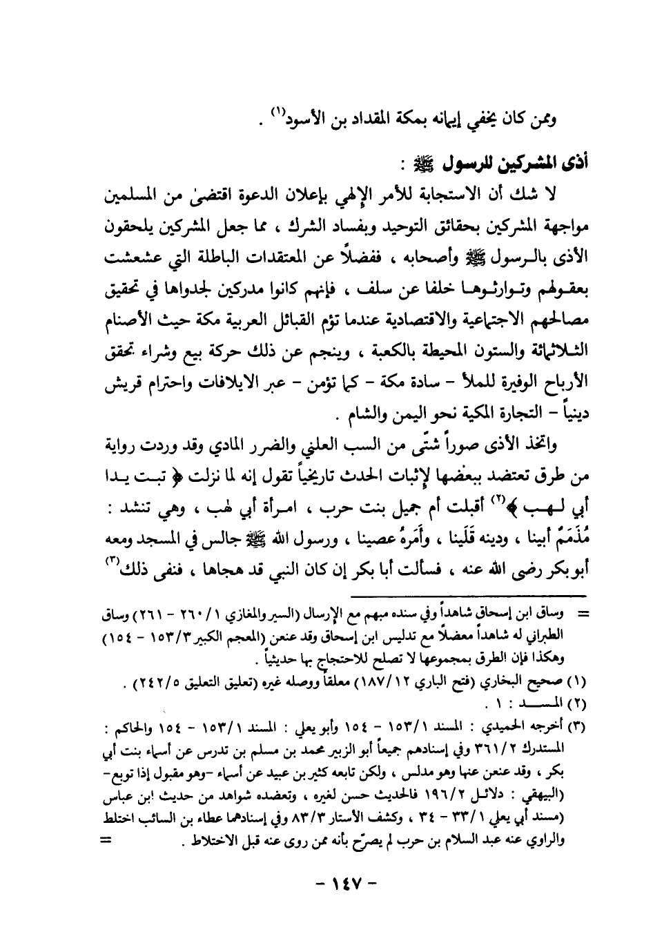 (¬3) أخرجه الحميدي: المسند 1/ 153 - 154 وأبو يعلي: المسند 1/ 153 - 154 والحاكم: المستدرك 2/ 361 وفي إسنادهم جميعاً أبو الزبير محمد بن مسلم بن تدرس عن أسماء بنت أبي بكر، وقد عنعن عنها وهو مدلس، ولكن تابعه كثير بن عبيد عن أسماء - وهو مقبول إذا توبع - (البيهقي: دلائل 2/ 196 فالحديث حسن لغيره، وتعضده شواهد من حديث ابن عباس (مسند أبي يعلي 1/ 33 - 34، وكشف الأستار 3/ 83 وفي إسنادهما عطاء بن السائب اختلط والراوي عنه عبد السلام بن حرب لم يصرّح بأنه ممن روى عنه قبل الاختلاط. =