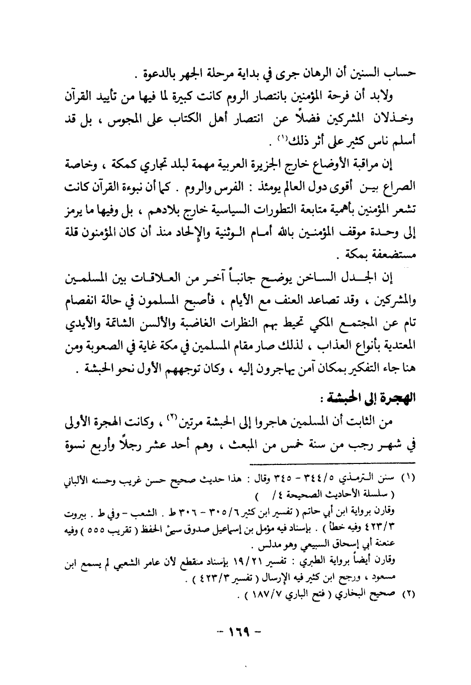 من الثابت أن المسلمين هاجروا إلى الحبشة مرتين (¬2)، وكانت الهجرة الأولى في شهر رجب من سنة خمس من المبعث، وهم أحد عشر رجلًا وأربع نسوة