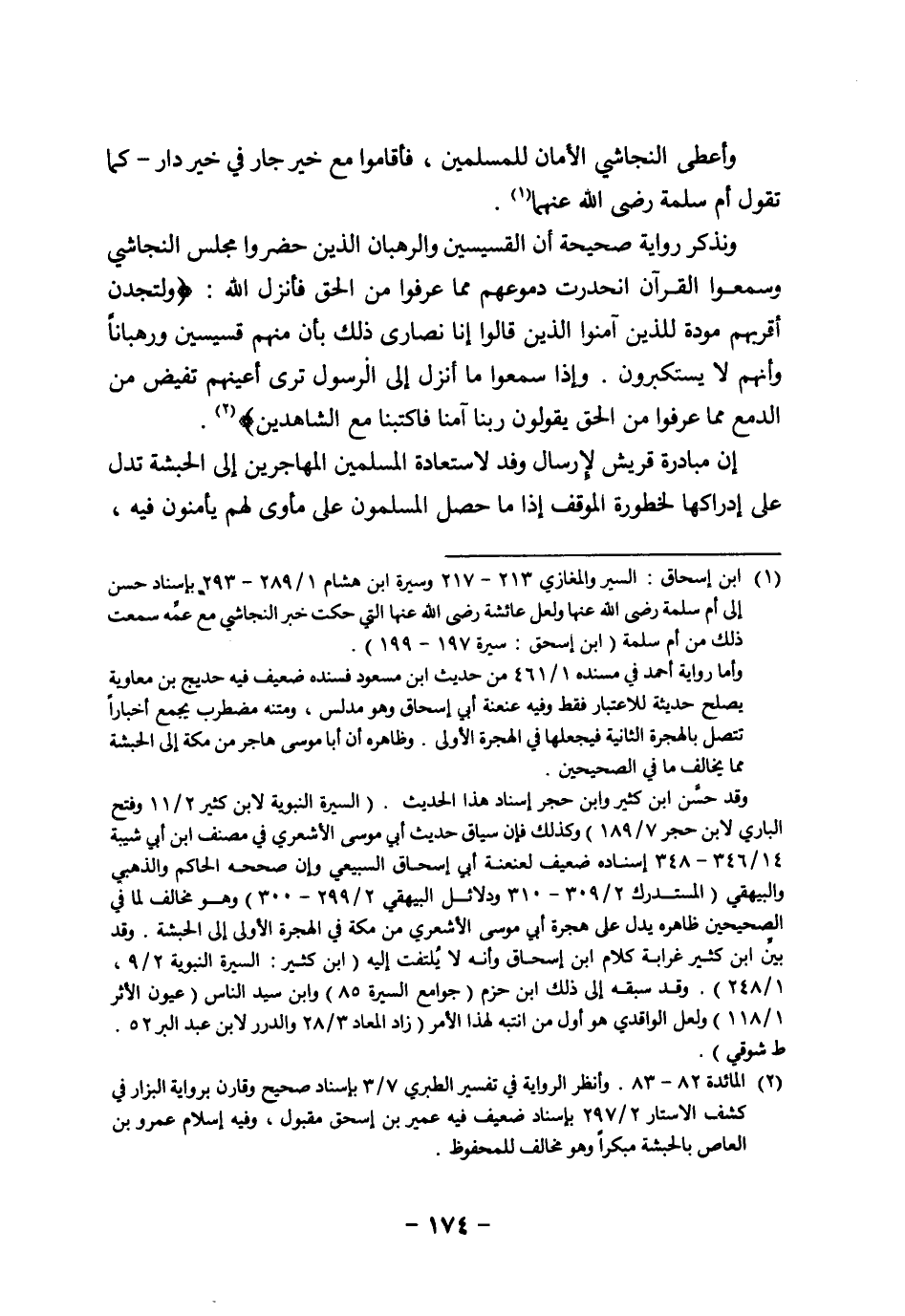 (¬2) المائدة 82 - 83. وأنظر الرواية في تفسير الطبري 7/ 3 بإسناد صحيح وقارن برواية البزار في كشف الأستار 2/ 297 بإسناد ضعيف فيه عمير بن إسحق مقبول، وفيه إسلام عمرو بن العاص بالحبشة مبكراً وهو مخالف للمحفوظ.