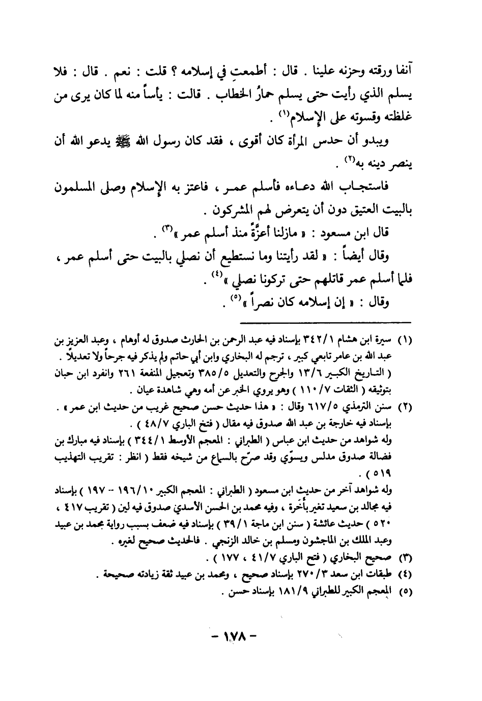 (¬1) سيرة ابن هشام 1/ 342 بإسناد فيه عبد الرحمن بن الحارث صدوق له أوهام، وعبد العزيز بن عبد الله بن عامر تابعي كبير، ترجم له البخاري وابن أبي حاتم ولم يذكر فيه جرحاً ولا تعديلاً. (التاريخ الكبير 6/ 13 والجرح والتعديل 5/ 385 وتعجيل المنفعة 261 وانفراد ابن حبان بتوثيقه (الثقات 7/ 110) وهو يروي الخبر عن أمه وهي شاهدة عيان.