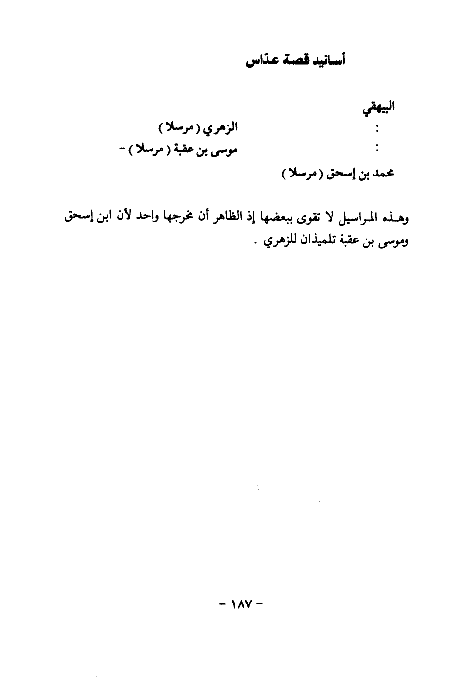 وهذه المراسيل لا تقوى ببعضها إذ الظاهر أن مخرجها واحد لأن ابن إسحاق وموسى بن عقبة تلميذان للزهري.