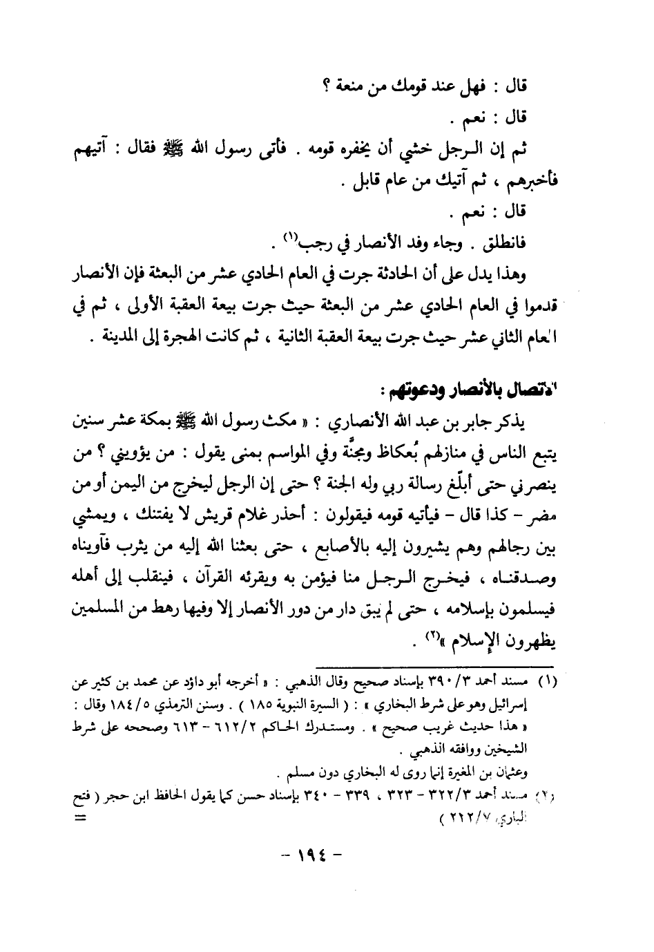 (¬1) مسند أحمد 3/ 390 بإسناد صحيح وقال الذهبي: "أخرجه أبو داؤد عن محمد بن كثير عن إسرائيل وهو على شرط البخاري": (السيرة النبوية 185). وسنن الترمذي 5/ 184 وقال: "هذا حديث غريب صحيح". ومستدرك الحاكم 2/ 612 - 613 وصححه على شرط الشيخين ووافقه الذهبي.