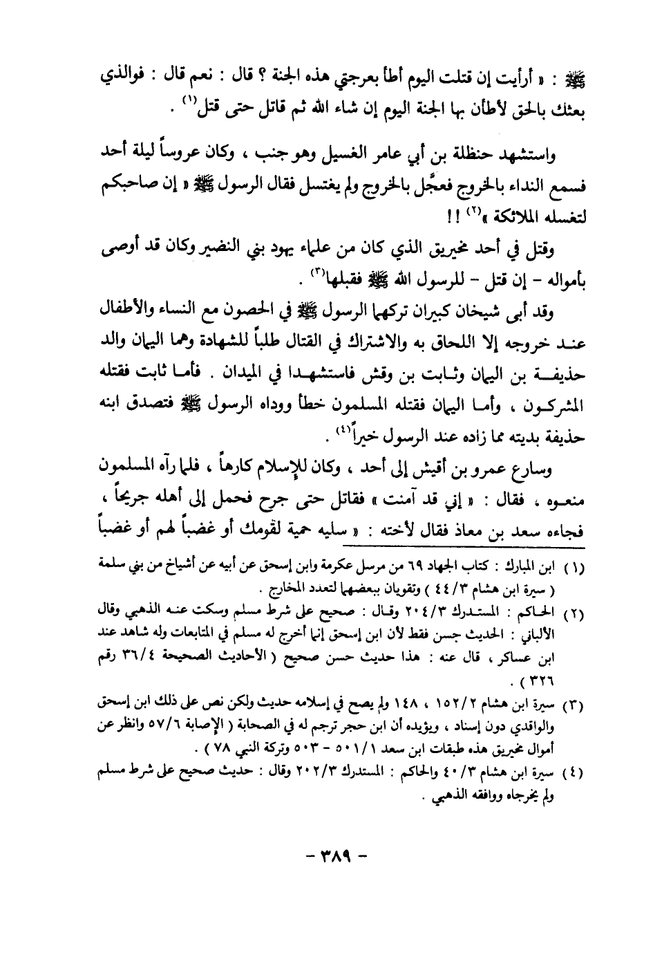 (¬3) سيرة ابن هشام 2/ 152، 148 ولم يصح في إسلامه حديث ولكن نص على ذلك ابن إسحق والواقدي دون إسناد، ويؤيده أن ابن حجر ترجم له في الصحابة (الإصابة 6/ 57 وانظر عن أموال مخيريق هذه طبقات ابن سعد 1/ 501 - 503 وتركة النبي 78).