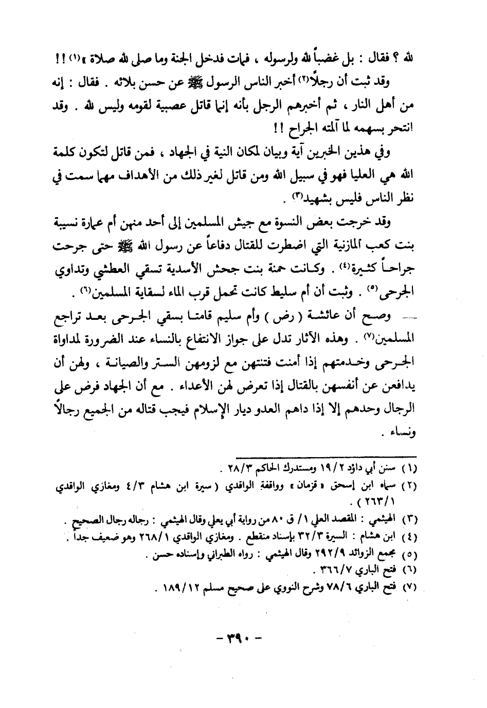 وفي هذين الخبرين آية وبيان لمكان النية في الجهاد، فمن قاتل لتكون كلمة الله هي العليا فهو في سبيل الله ومن قاتل لغير ذلك من الأهداف مهما سمت في نظر الناس فليس بشهيد (¬3).
