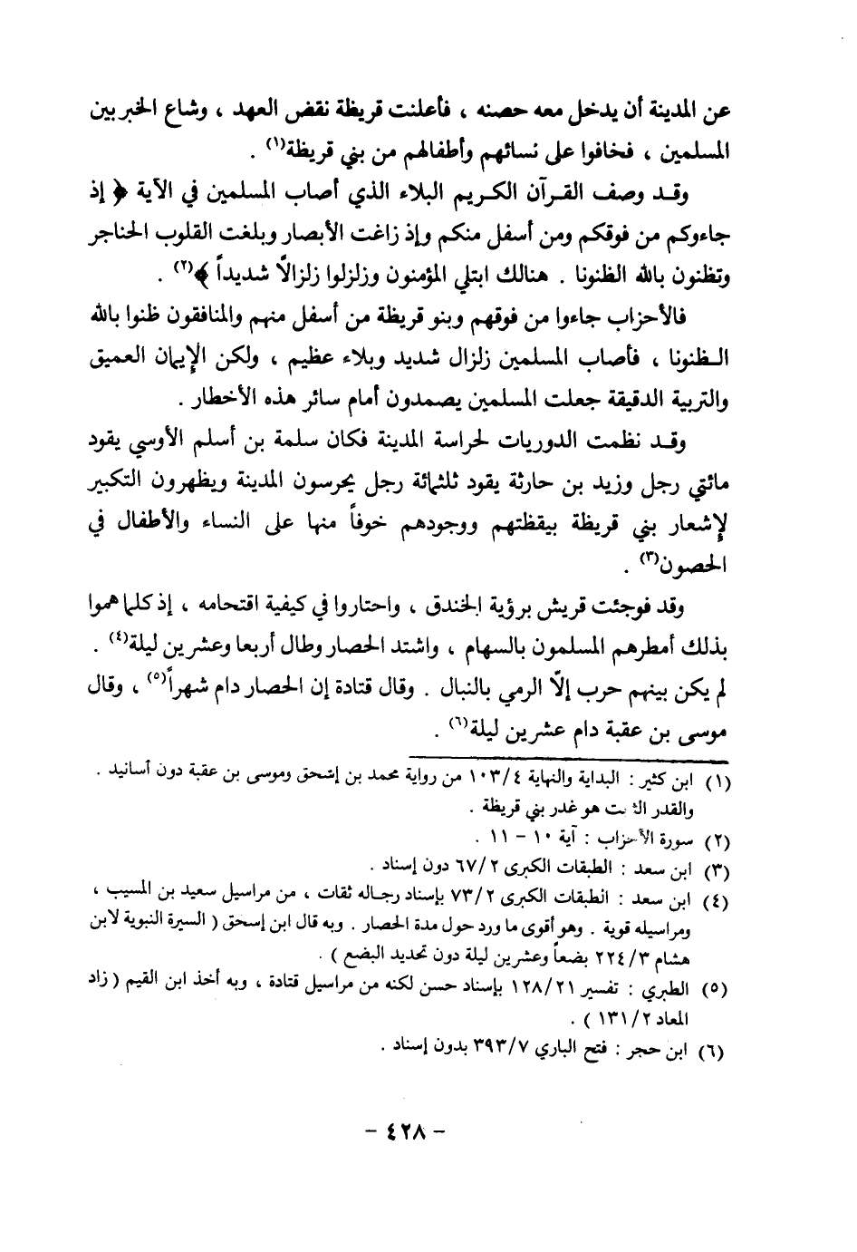 (¬4) ابن سعد: الطبقات الكبرى 2/ 73 بإسناد رجاله ثقات، من مراسيل سعيد بن المسيب، ومراسيله قوية. وهو أقوى ما ورد حول مدة الحصار. وبه قال ابن إسحق (السيرة النبوية لابن هشام 3/ 224 بضعاً وعشرين ليلة دون تحديد البضع).