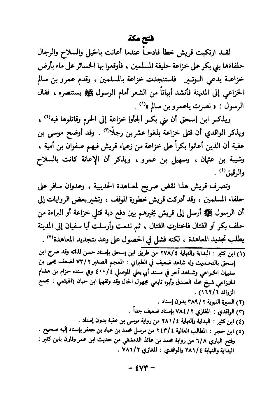 (¬5) ابن حجر: المطالب العالية 4/ 243 من مرسل محمد بن عباد بن جعفر بإسناد إليه صحيح. وفتح الباري 8/ 6 من رواية محمد بن عائذ الدمشقي من حديث ابن عمر وقارن بابن كثير: البداية والنهاية 4/ 281 والواقدي: المغازي 2/ 786.